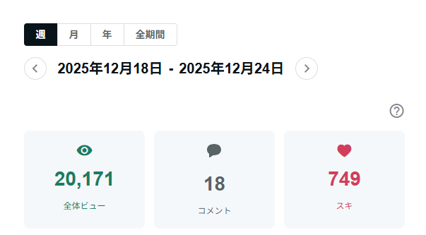 - 週間ビュー2万人到達